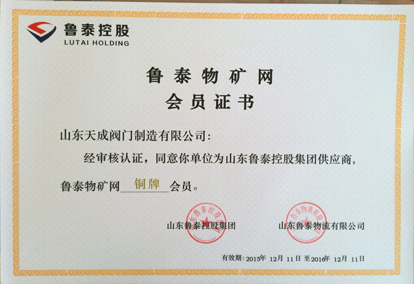 2015年12月,公司榮獲魯泰控股證書