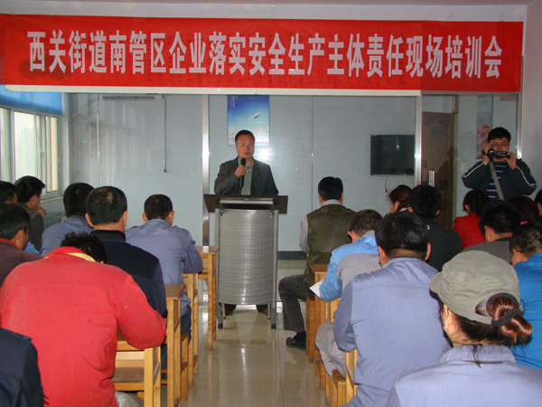 4.16日上午,西關街辦的領導來我司組織召開了“西關街道南管區企業落實安全生產主體責任現場培訓會”,我司全體成員及西關街道相關企業的領導都參加了培訓。培訓結束后又在公司院內舉行了現場消防演習。通過參加此次培訓和演習,大家掌握了自救方法,學會了使用滅火器。各參會企業了解了安全生產的重要性,加強了安全意識。